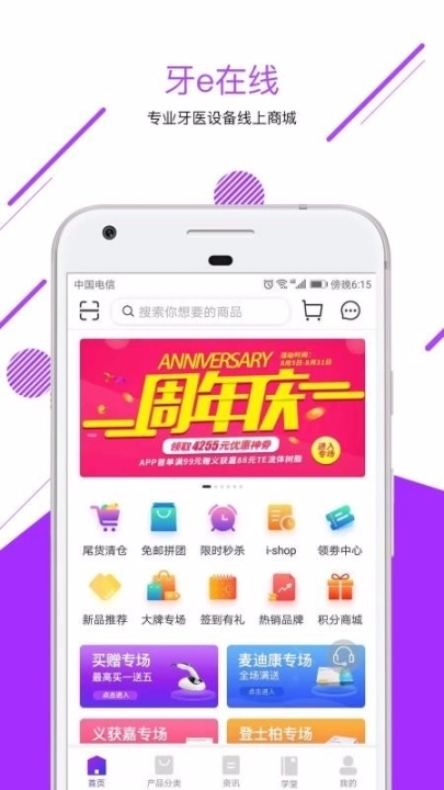 - 牙e在线app,这可是个超棒的牙科商品采购商城。全国的口腔机构都能随时随地在这儿采购牙科用品。在产品分类板块,各种商品分类标签以及所有品