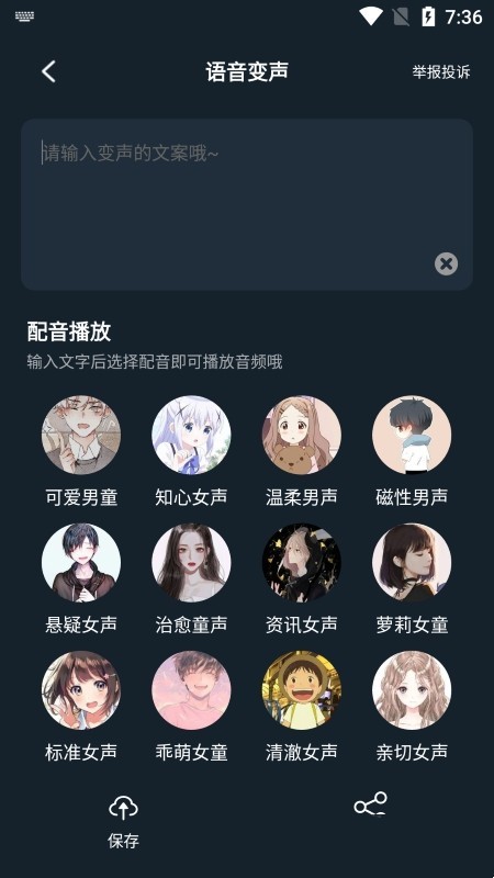4、支持文字转语音功能,用户只需输入文字即可变声为多种语音,并可保存后进行变速变调处理,满足个性化需求。