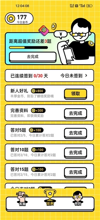 3、每日根据答对题的数量可以获得金币奖励,金币可以兑换成红包