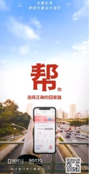 春运期间,“帮邦行”将一如既往严格落实疫情防控方针,积极配合各地政府部门做好疫情防护工作,保证大家安心、放心乘坐,平安回家过大年!