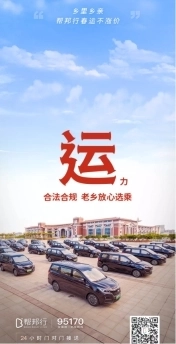 为持续给广大群众提供安全、实惠、便利的出行服务,“帮邦行”承诺春运期间不涨价,且在各地陆续新增运力,力争让广大城乡百姓开开心心回家过大年!