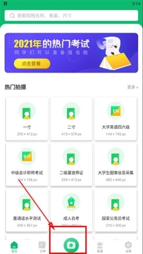 1、进入证件照照片制作APP,点击屏幕下方的相机按钮;