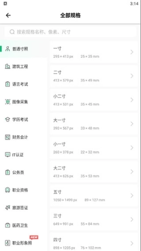 齐全的证件照规格:一寸、二寸、三寸、五寸、半身照、小一寸、大一寸、小二寸等等。