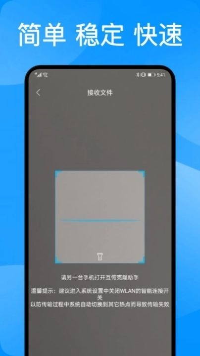 1.操作简单,只需要两个设备打开软件扫一扫功能,即可轻松连接,短短几步即可完成资料传输。