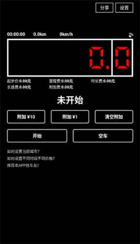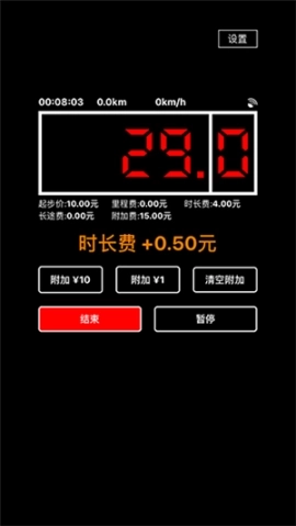 【简单好用】模仿传统的出租车打表器,同时附加总里程数、总耗时,当前速度,及各费用明细等信息,界面简洁实用,一目了然。