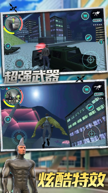 1.超级免费的游戏玩法,可以在这个城市自由探索,消灭违法者并保护人民的安全。