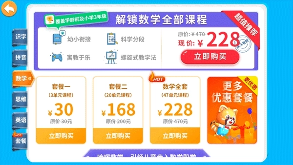 v1.0.2版本1、覆盖学龄前和小学3年级数学思维
