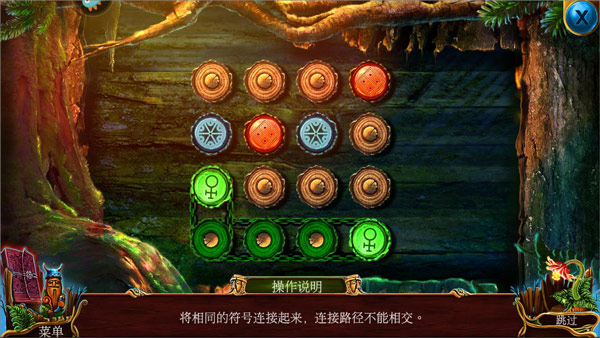 4、根据操作提示把相同符号连接起来且连接路径不能相交,完成小游戏即可打开大门。