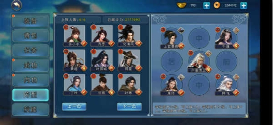 阵型界面右侧上方增加了一个【选择阵法】的按钮,玩家可以通过这里进入阵法界面,并进行阵法操作。