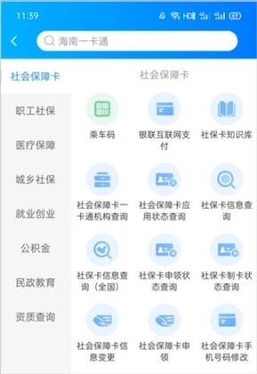 1、进入海南一卡通软件主页面-社保卡-“社会保障卡”。