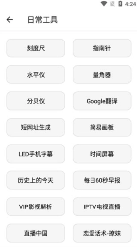 2、点开日常工具,涵盖了刻度尺、指南针、水平仪、量角器、Google翻译、短网址生成。