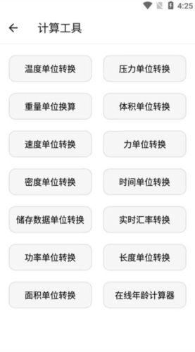 3、点开计算工具,涵盖了温度单位转换、压力单位转换、重量单位转换、体积单位转换。