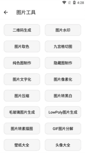 5、点开图片共苦,拥有二维码生成、图片水印、图片取色、九宫格切图、纯色图制作。