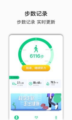 1、精准记录步数,运动里程、时间、卡路里轻松查;