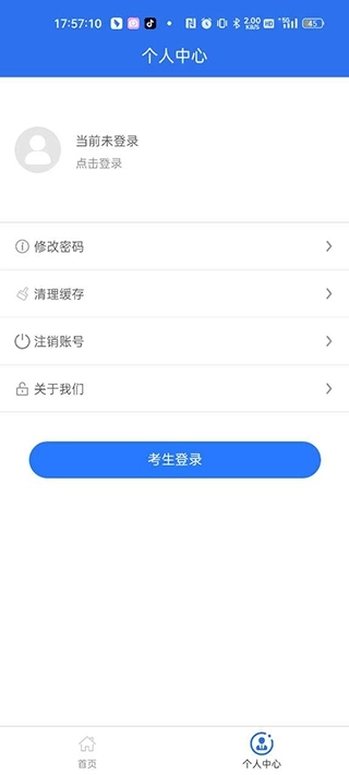 4.点击个人中心可以选择考生登录,然后报名。