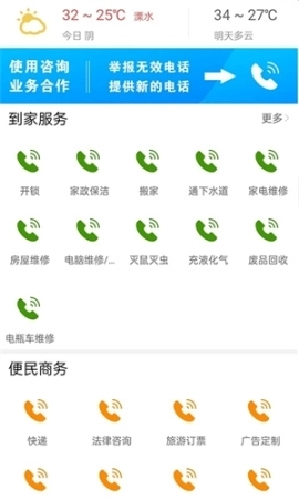 5、点击电话能够拨打各种维修电话、商家服务电话、党政电话等。