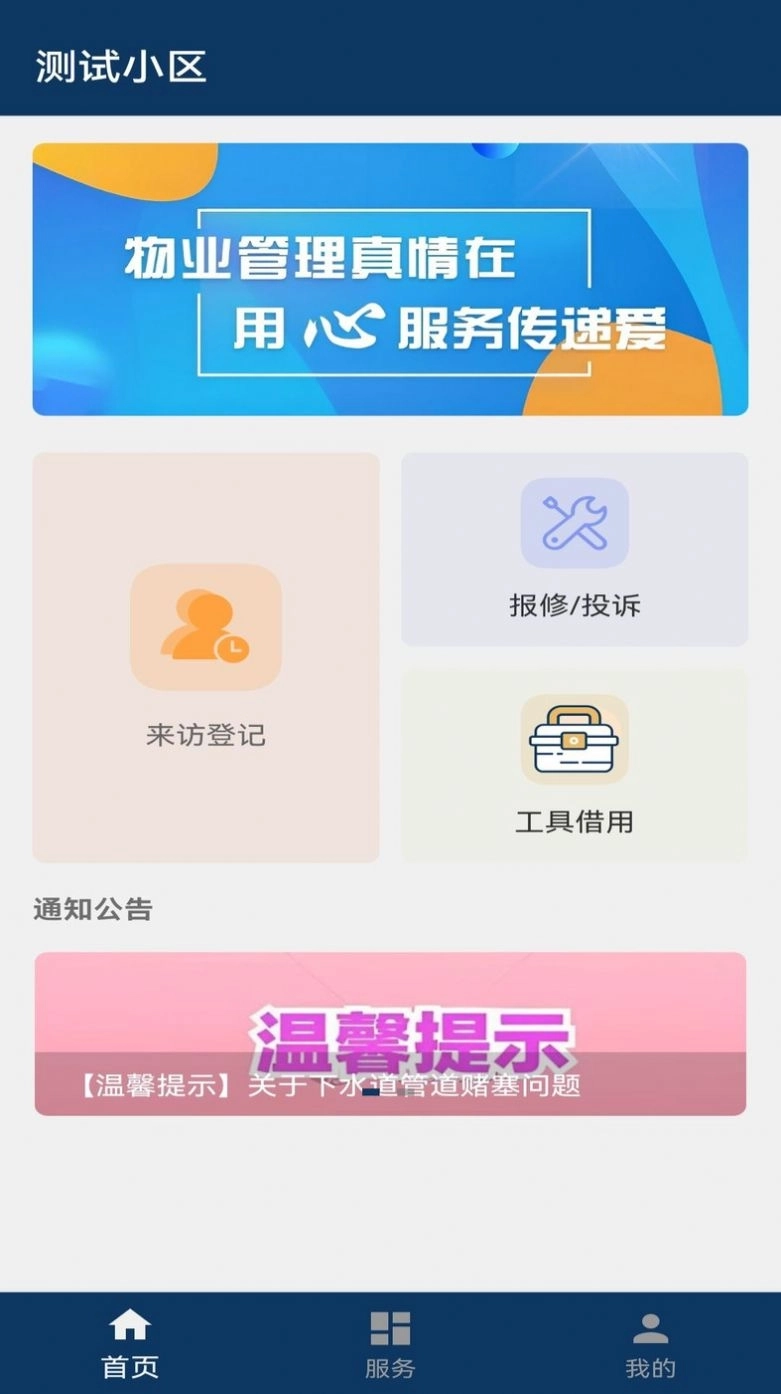 3、服务中心:还提供各种服务,包括预约服务、周边服务、故障报修等,方便业主随时了解物业信息。