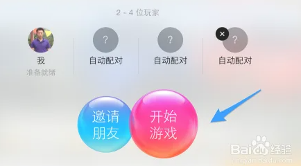 然后是多人游戏的玩家选择,可以邀请自己在 GameCenter 上的好友,也可以随机自动匹配玩家。这里直接点击“开始游戏”泡泡,让系统自动匹配玩家,如图所示