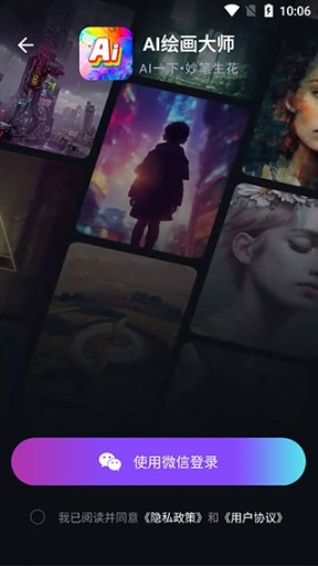 1、先从本站下载好AI绘画大师,下载完成后,打开APP,目前软件只支持微信登录。