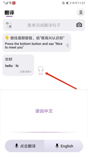 3、在翻译完成后,选择“跟读”选项,