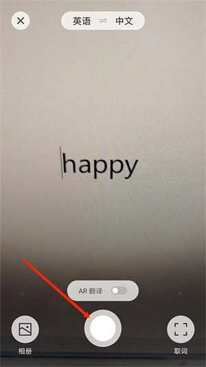 2、进入到翻译界面,对准需要翻译的内容,然后选择下方“圆形”拍摄,