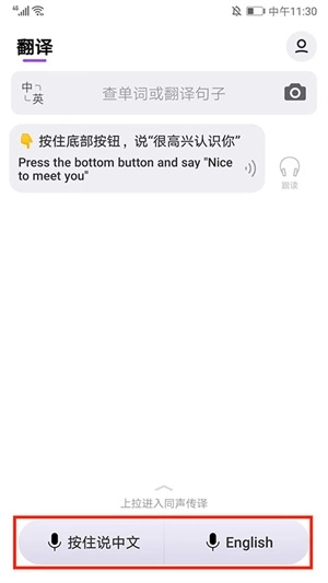 2、也可以选择下方通过语音说话来进行翻译,