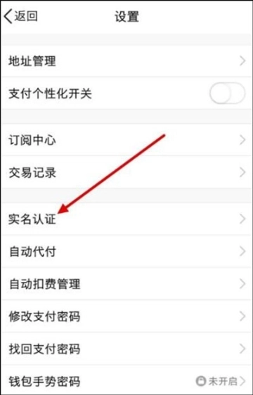 4、进入到设置的操作界面后,找到“实名认证”选项,点击打开。
